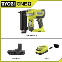 Ryobi ONE+ 18V Cordless 18-Gauge Brad Nailer Kit With 2.0 Ah Compact Battery And Charger