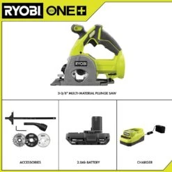 Ryobi ONE+ 18V Cordless 3-3/8 In. Multi Material Plunge Saw Kit With 2.0 Ah Battery And Charger