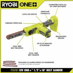 Ryobi ONE+ 18V Cordless 1/2 In. X 18 In. Belt Sander With 2.0 Ah Battery And Charger Kit