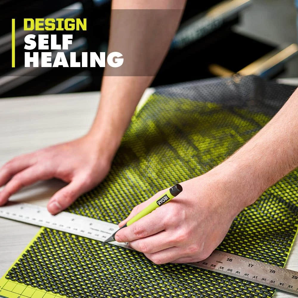 The RYOBI A3 Self Healing Cutting Mat provides a durable work surface for cutting and other applications. Constructed with a self healing surface the mat is extremely durable and can re-seal after repeated cuts. The mats are also non-slip for added control and double-sided with precision grid lines in both Inches and Centimeters.