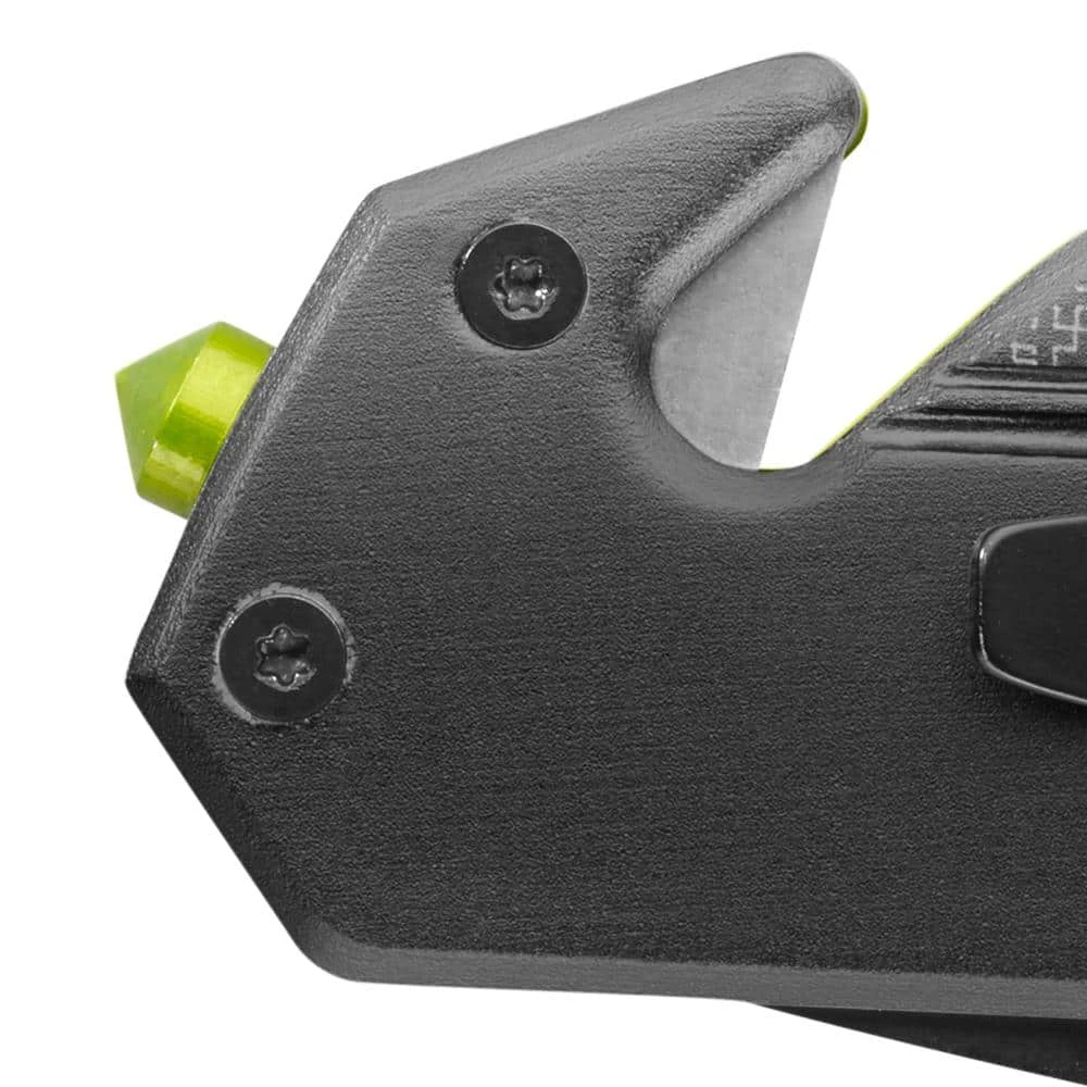 RYOBI introduces the Compact Folding Tactical Knife with a 2.25 in. Straight Edge Blade. This knife is designed for more than your average cutting applications, featuring an integrated glass breaker as well as a strap cutter for your more niche cutting situations. Backed by the RYOBI Limited Lifetime Warranty, this versatile knife includes a removable pocket clip and an operator’s manual and is a must-have product.