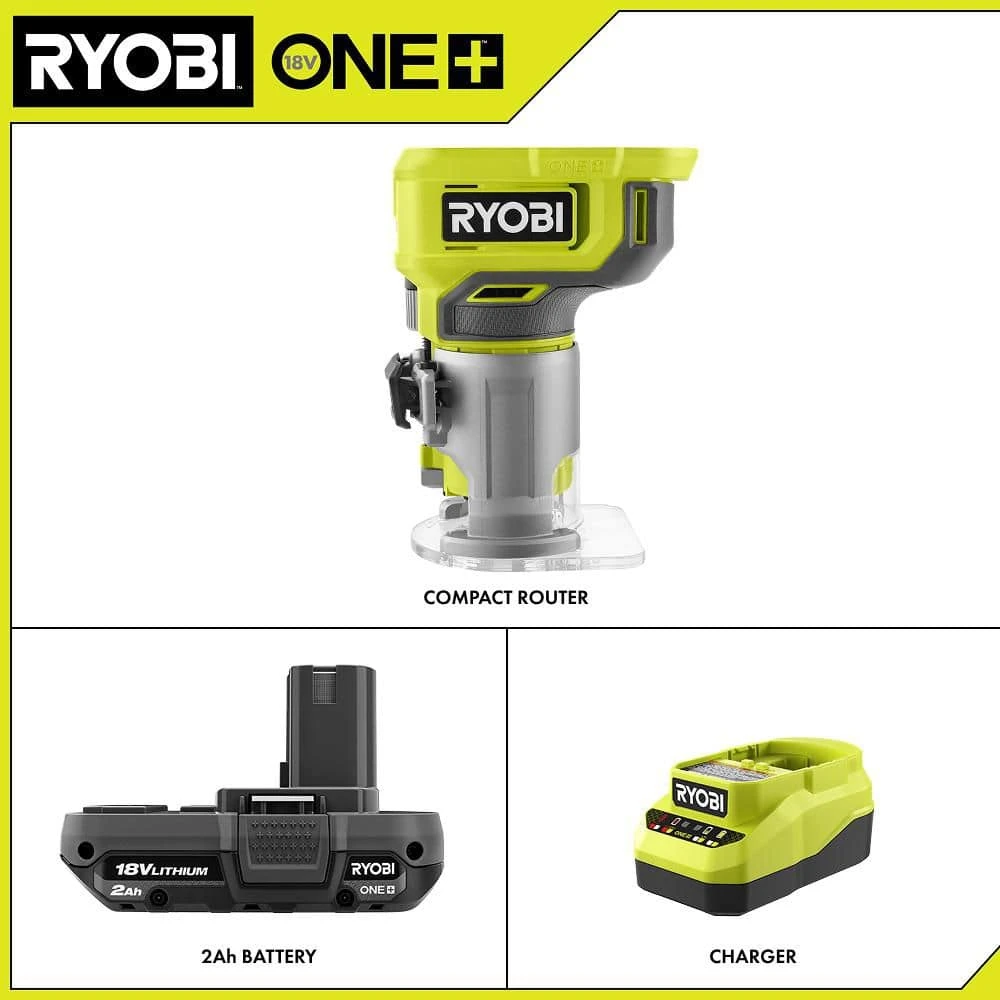 RYOBI introduces the 18V ONE+ Cordless Compact Router with 2.0 Ah Battery and Charger Kit. This router operates between 20,000 – 30,000 RPM, allowing users the ability to trim with enhanced power and accuracy in all applications. Easily change depth of cut with micro and macro depth adjustment. The new ONE+ Cordless Compact Router is 20% more compact (than P601) and the new ergonomic design helps to provide comfort and control during extended use. Best of all, it is part of the RYOBI ONE+ System of over 300 Cordless Products that all work on the same battery platform. Backed by the RYOBI 3-Year Manufacturer’s Warranty, the 18V ONE+ Cordless Compact Router includes a collet wrench, vacuum dust chute, a 2.0 Ah Battery, Charger, and an operator’s manual.