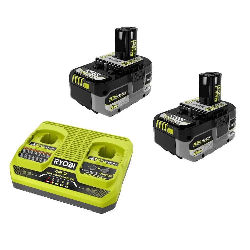 Expand your RYOBI 18V ONE+ System with the RYOBI 18V ONE+ Dual-Port Simultaneous Charger. With 2X faster charging than PCG002, this charger decreases downtime significantly. Ensuring convenience, it is compatible with all RYOBI 18V ONE+ batteries and even allows users to charge two batteries at the same time. Featuring LED indicator lights, users can easily identify battery charge status. The Energy Save Mode conserves energy when not charging or maintaining batteries. To maximize workspace, the wall mount capability ensures organization at any given point. Best of all, it is part of the RYOBI 18V ONE+ System of over 300 Cordless Products that all work on the same battery platform. This 18V ONE+ Dual-Port Simultaneous Charger is backed by the RYOBI 3-Year Manufacturer’s Warranty and includes (1) PCG005 18V ONE+ Dual-Port Simultaneous Charger, (2) 6.0 Ah HIGH PERFORMANCE Batteries, and an operator’s manual.