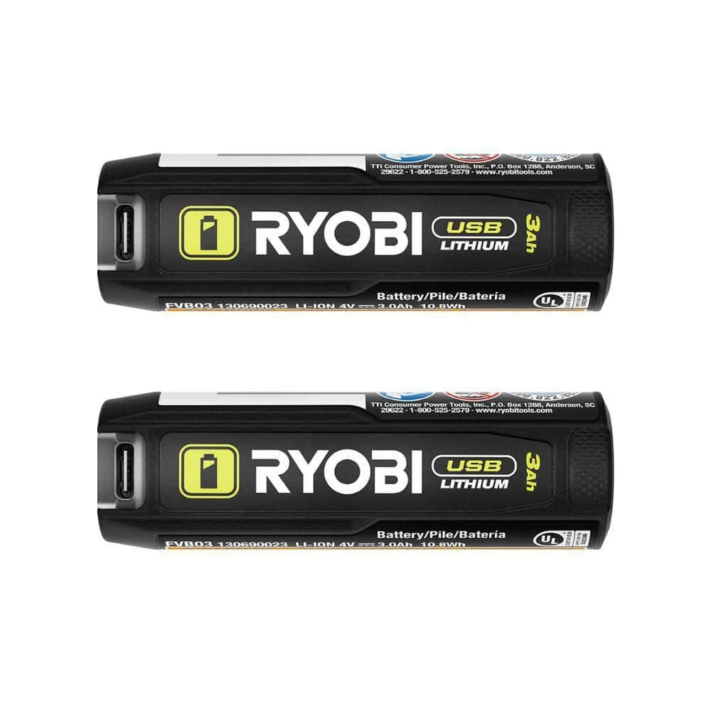RYOBI introduces the USB Lithium 3.0 Ah Lithium Rechargeable Battery (2-Pack). Providing convenience on-the-go, this battery will charge your small portable devices like your phone or smart watch. Featuring 50% more runtime than FVB01, you will be able to accomplish more per charge. The on-board LED fuel gauge takes away the guess work by clearly indicating the battery level status. This battery features a USB-C charging port for easy charging with any USB-C cable. This battery is easily interchangeable across all USB Lithium products for cordless portability and minimal downtime. The USB Lithium 3.0 Ah Lithium Rechargeable Battery is backed by the RYOBI 2-Year Manufacturer’s Warranty and includes (2) FVB03 USB Lithium 3.0 Ah Lithium Rechargeable Batteries and operator’s manual.
